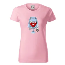 Sklenka vína se závojem pro budoucí nevěstu. Triko na rozlučku se svobodou.