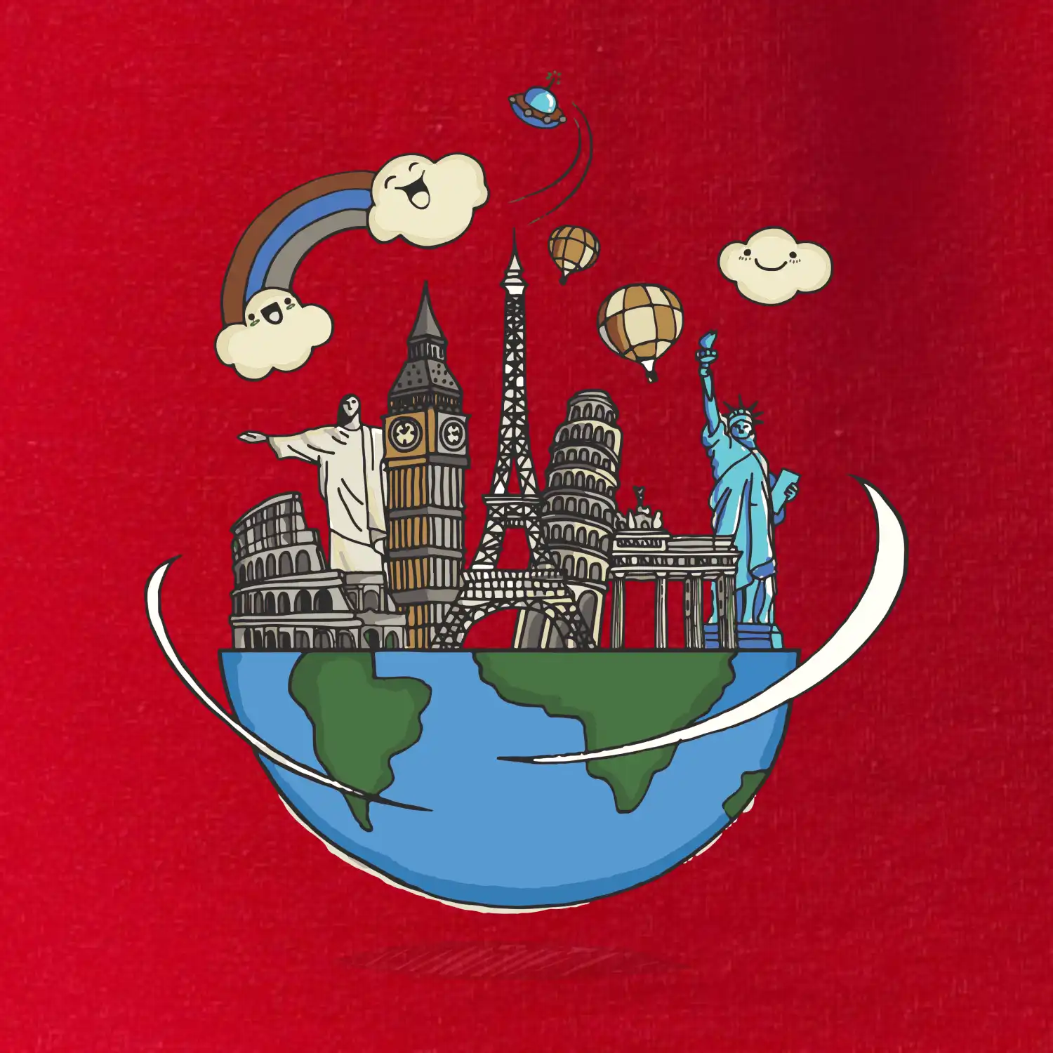 Tričko pre cestovateľov je vhodný darček pre milovníkov cestovania. Socha Slobody, Big Ben, šikmá veža v Pise, Eiffelova veža, Rímske Koloseum a ďalšie pamiatky na Tvojom tričku ukážu, že si pravý cestovateľ. Darček pre tých, ktorí sa chcú vydať na cestu okolo sveta.