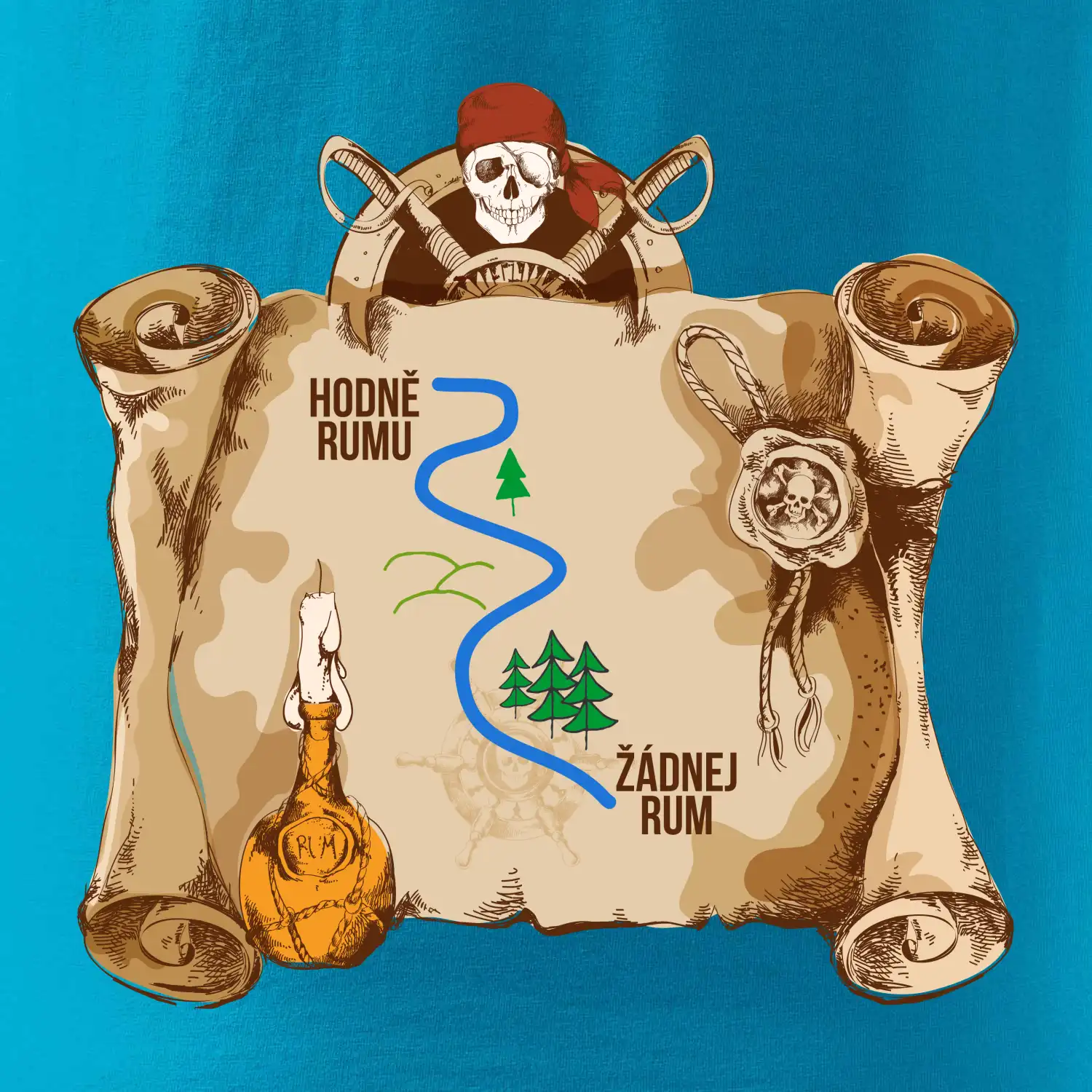 Piráti, drevená bárka, hák namiesto ruky a páske cez oko, ale niečo tu chýba...no samozrejme rum! Či už máš dušu piráta alebo len rád chlastáš všetko, čo tečie, toto tričko je skvelý darček pre teba alebo pre tvojich kamarátov. Urob si radosť a ukáž všetkým, že rum vládne svetu!