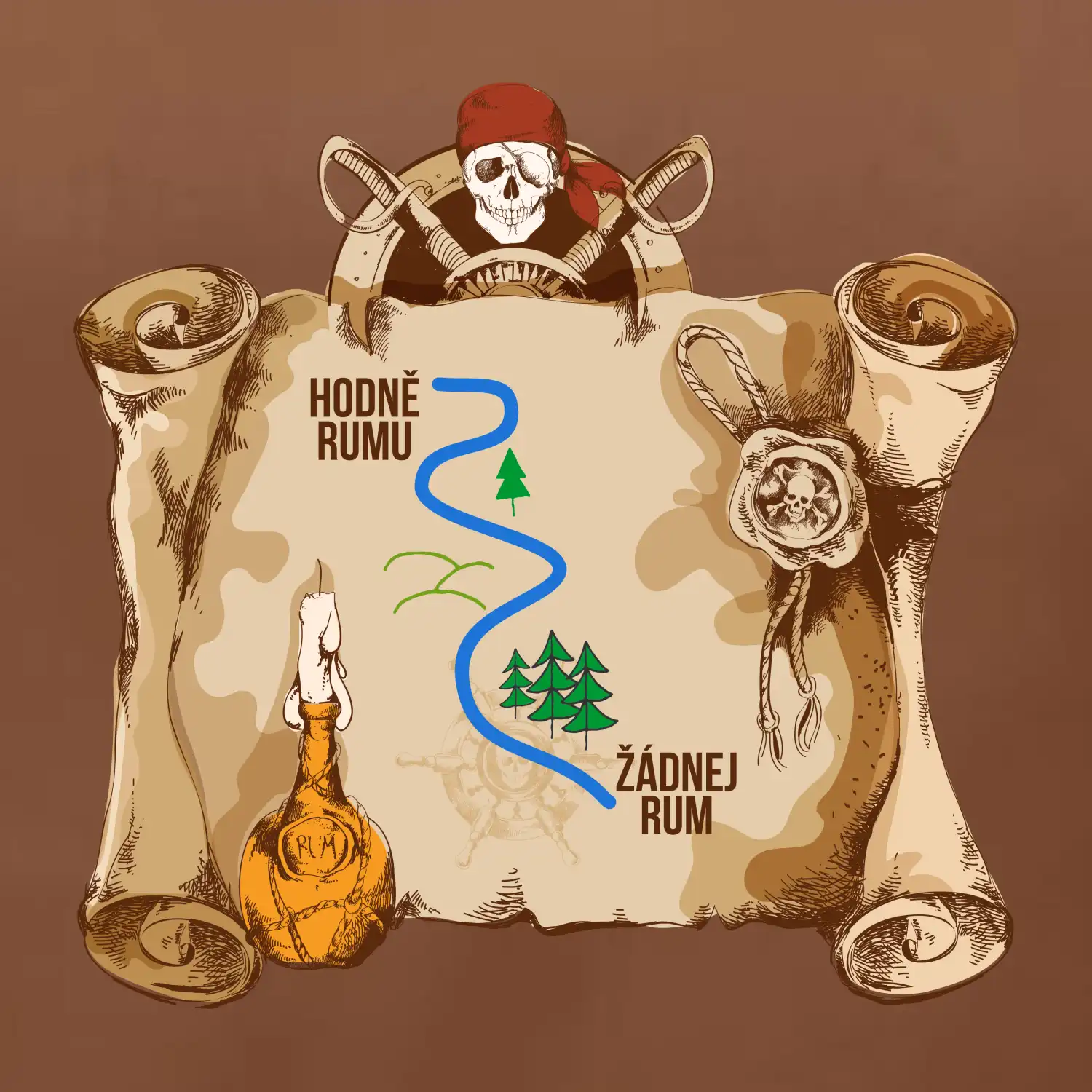 Piráti, drevená bárka, hák namiesto ruky a páske cez oko, ale niečo tu chýba...no samozrejme rum! Či už máš dušu piráta alebo len rád chlastáš všetko, čo tečie, toto tričko je skvelý darček pre teba alebo pre tvojich kamarátov. Urob si radosť a ukáž všetkým, že rum vládne svetu!