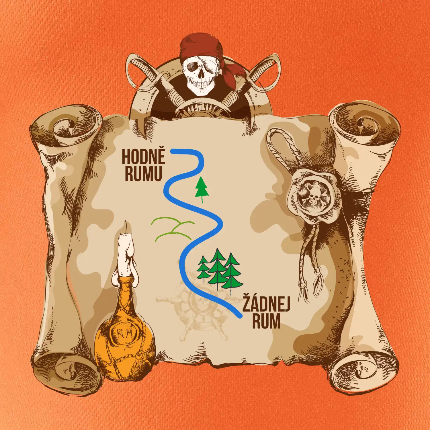 Piráti, drevená bárka, hák namiesto ruky a páske cez oko, ale niečo tu chýba...no samozrejme rum! Či už máš dušu piráta alebo len rád chlastáš všetko, čo tečie, toto tričko je skvelý darček pre teba alebo pre tvojich kamarátov. Urob si radosť a ukáž všetkým, že rum vládne svetu!