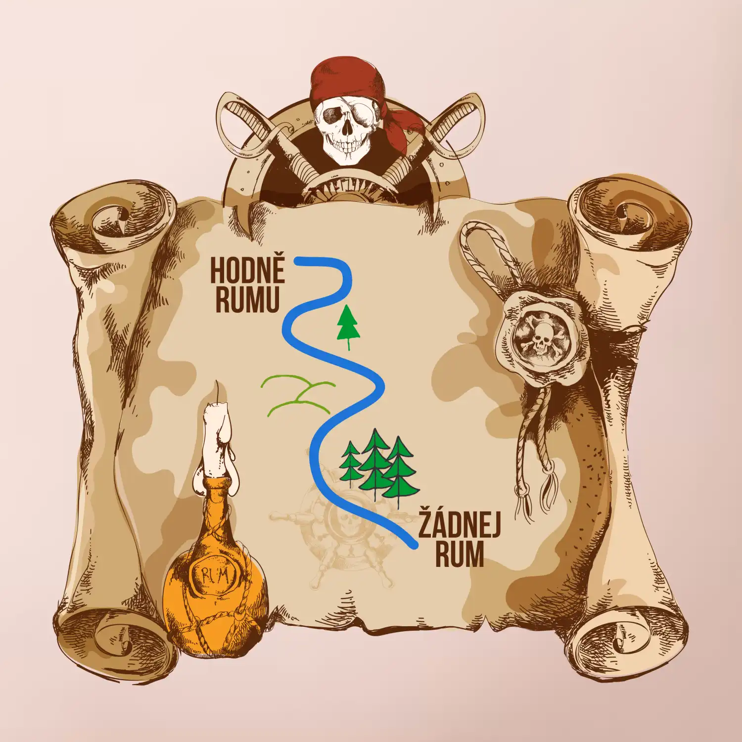 Piráti, drevená bárka, hák namiesto ruky a páske cez oko, ale niečo tu chýba...no samozrejme rum! Či už máš dušu piráta alebo len rád chlastáš všetko, čo tečie, toto tričko je skvelý darček pre teba alebo pre tvojich kamarátov. Urob si radosť a ukáž všetkým, že rum vládne svetu!