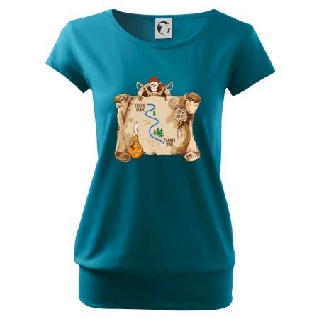 Trendové dámske tričko s veľmi krátkym rukávom, voľnejšieho strihu, v dolnom kraji všité do širokého lemu. Okrúhly priekrčník s úzkym lemom zo zhodného materiálu.