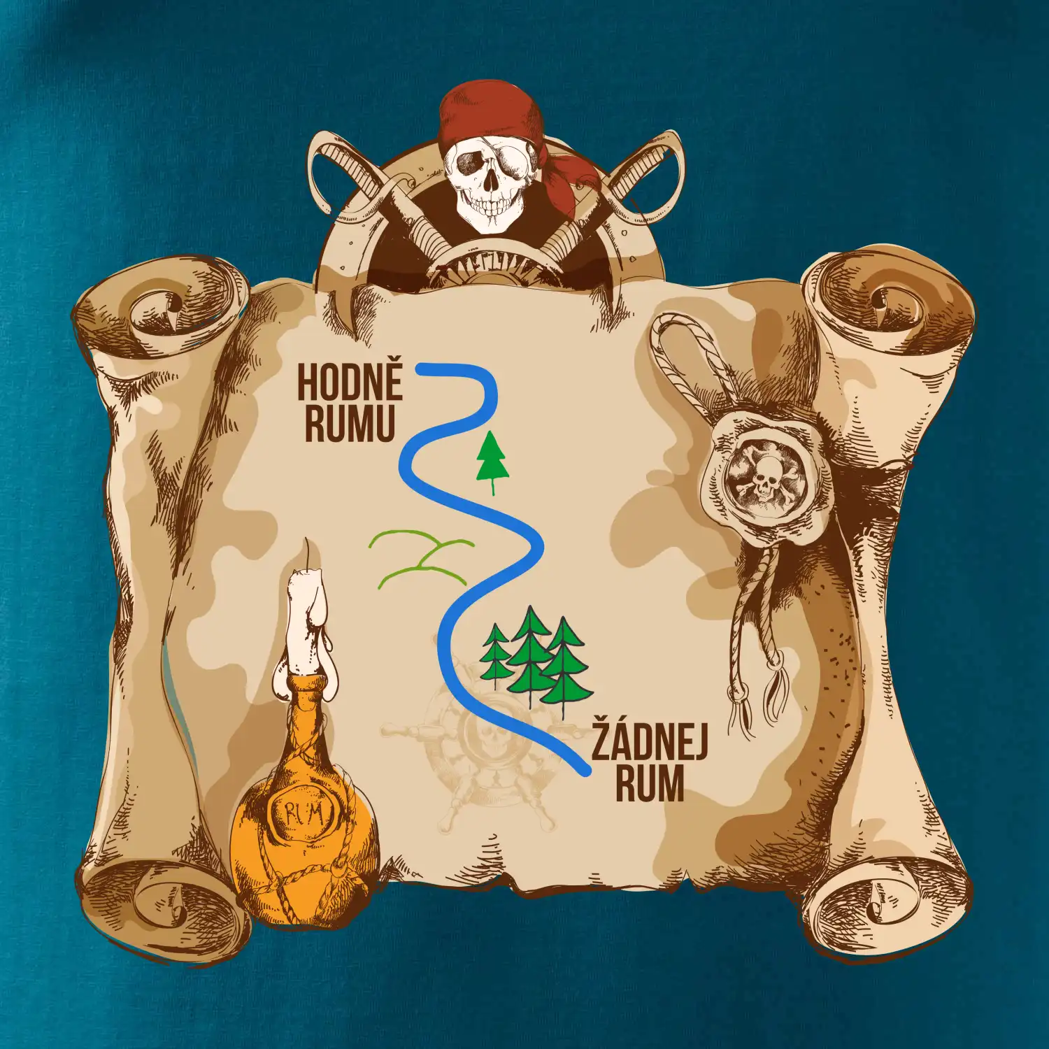 Piráti, drevená bárka, hák namiesto ruky a páske cez oko, ale niečo tu chýba...no samozrejme rum! Či už máš dušu piráta alebo len rád chlastáš všetko, čo tečie, toto tričko je skvelý darček pre teba alebo pre tvojich kamarátov. Urob si radosť a ukáž všetkým, že rum vládne svetu!