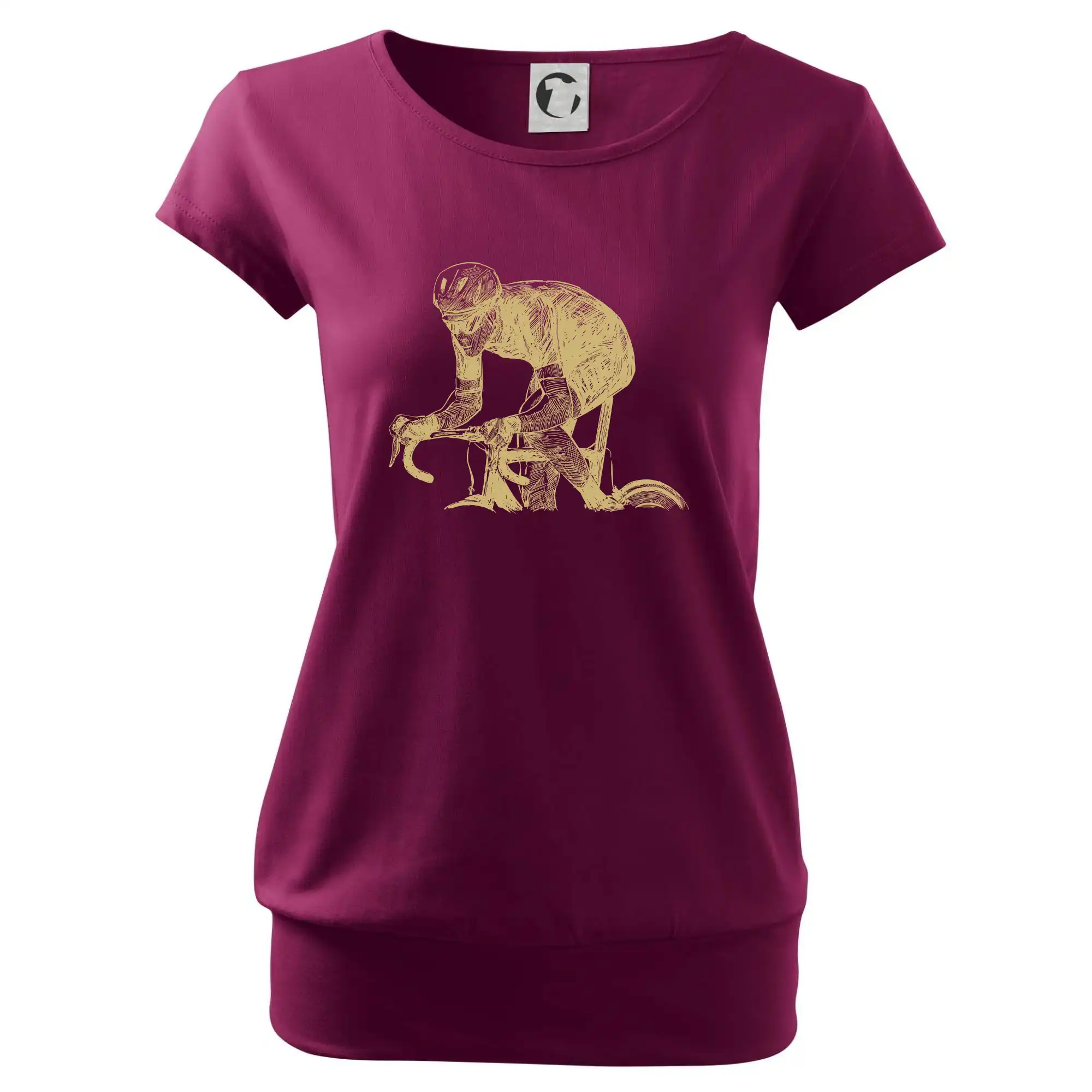 Trendové dámske tričko s veľmi krátkym rukávom, voľnejšieho strihu, v dolnom kraji všité do širokého lemu. Okrúhly priekrčník s úzkym lemom zo zhodného materiálu.