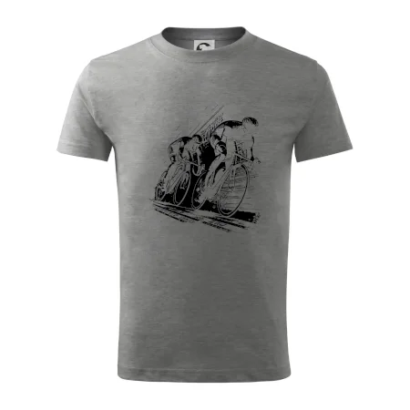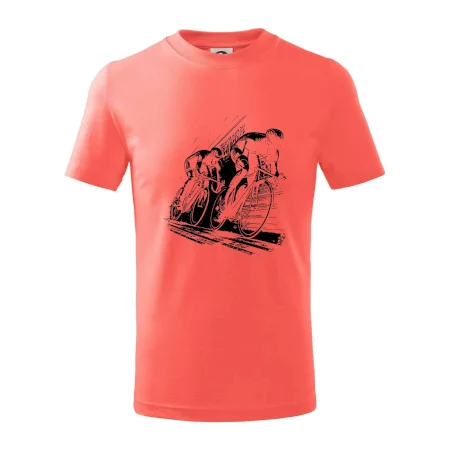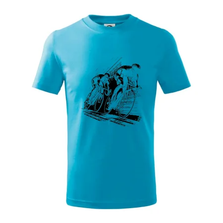 Detské tričko strednej gramáže s bočnými švami. Úzky priekrčník s prídavkom 5% elastanu. Vnútorná časť zadného priekrčníka začistená tkanou páskou. Spevnený ramenný šev.