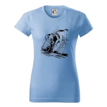 Trendové dámske tričko s veľmi krátkym rukávom, voľnejšieho strihu, v dolnom kraji všité do širokého lemu. Okrúhly priekrčník s úzkym lemom zo zhodného materiálu.