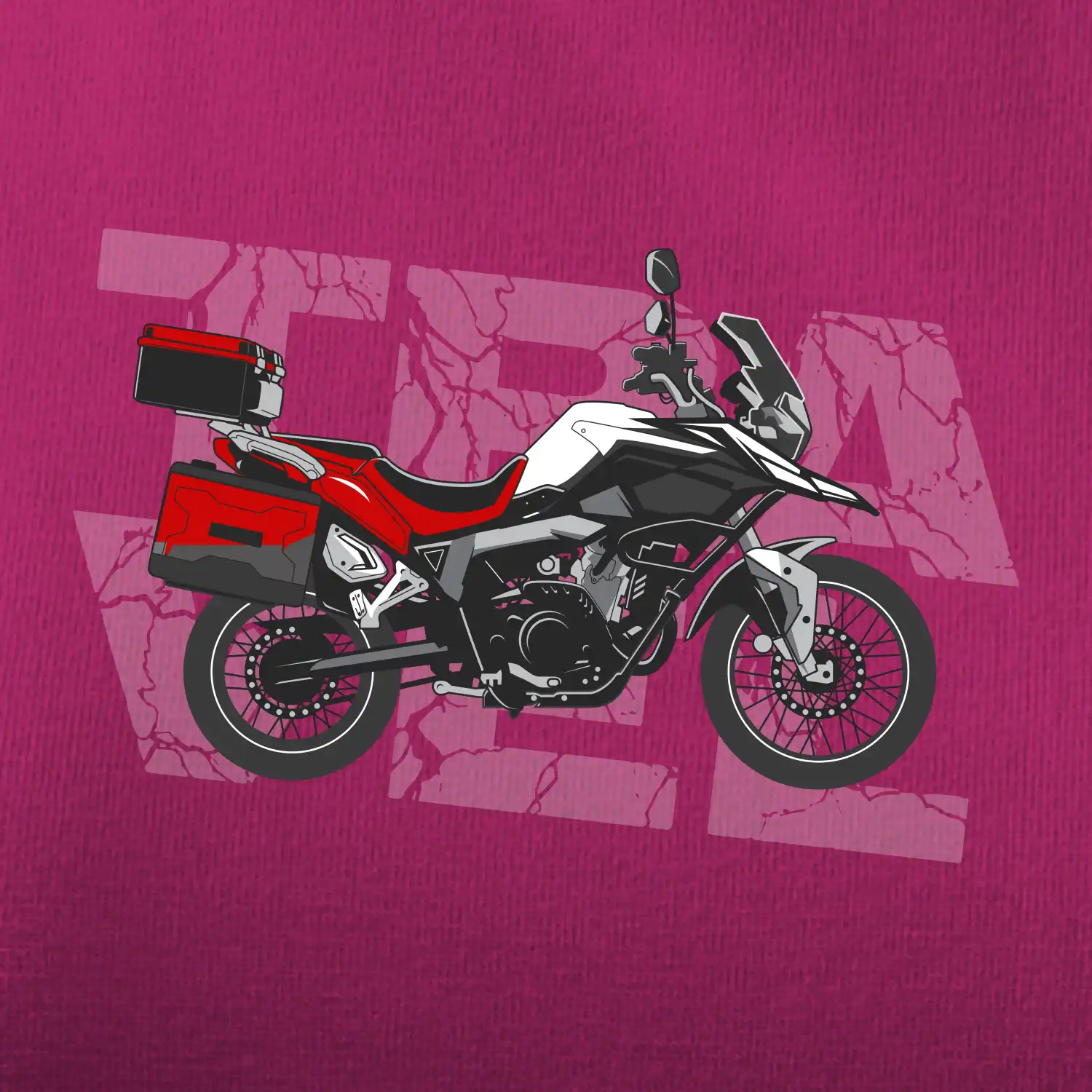 Tričko pre motorkára, na ktorom je červená cestovná enduro motorka. Motorkárske tričko, kde je cestovná motorka, musí mať doma každý vášnivý motorkár. Tričko s motorkou je vhodný darček pre motorkára.
