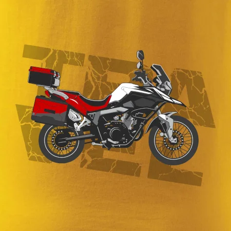 Tričko pre motorkára, na ktorom je červená cestovná enduro motorka. Motorkárske tričko, kde je cestovná motorka, musí mať doma každý vášnivý motorkár. Tričko s motorkou je vhodný darček pre motorkára.