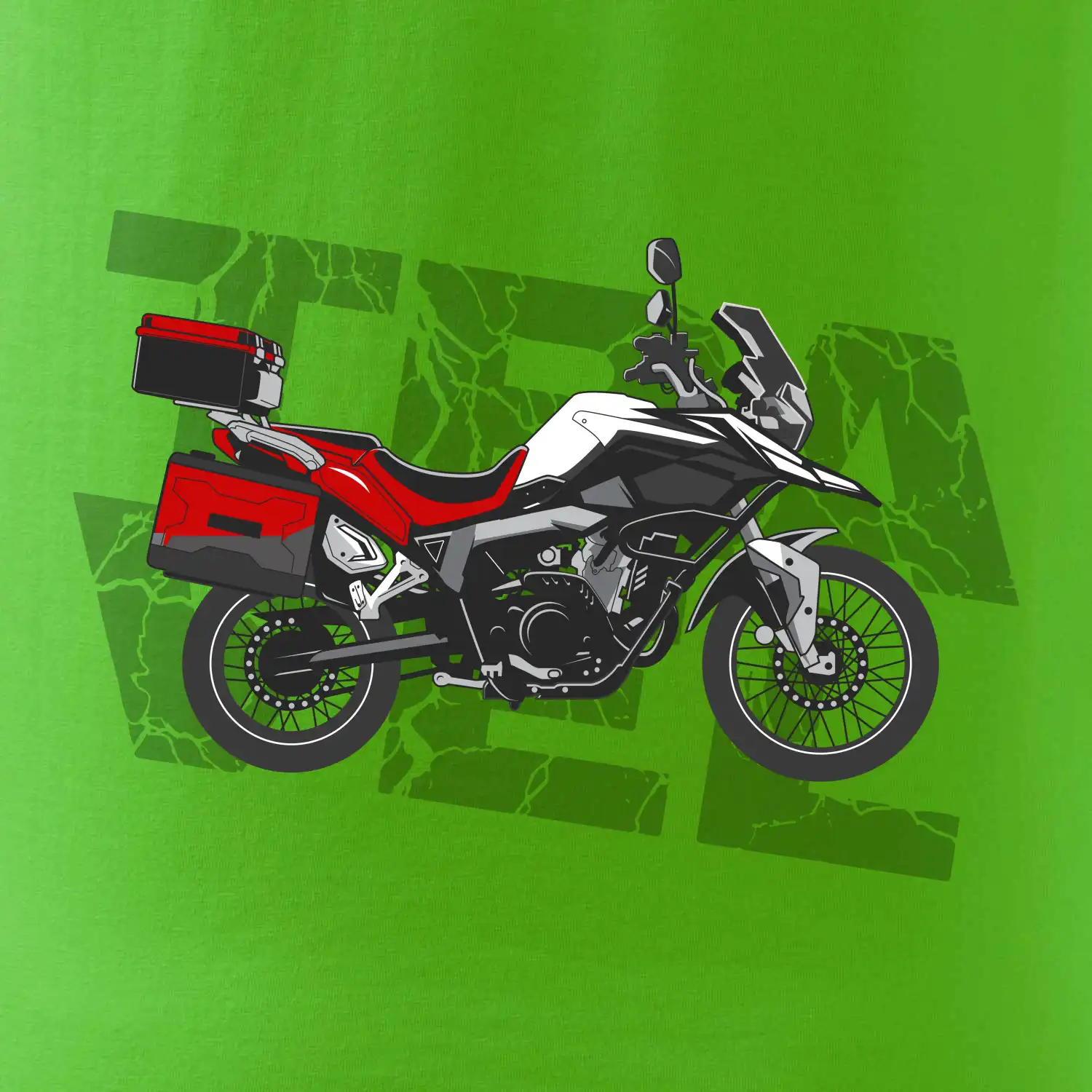 Tričko pre motorkára, na ktorom je červená cestovná enduro motorka. Motorkárske tričko, kde je cestovná motorka, musí mať doma každý vášnivý motorkár. Tričko s motorkou je vhodný darček pre motorkára.