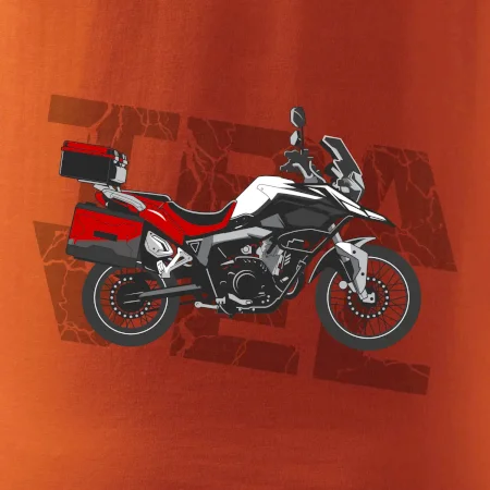Tričko pre motorkára, na ktorom je červená cestovná enduro motorka. Motorkárske tričko, kde je cestovná motorka, musí mať doma každý vášnivý motorkár. Tričko s motorkou je vhodný darček pre motorkára.