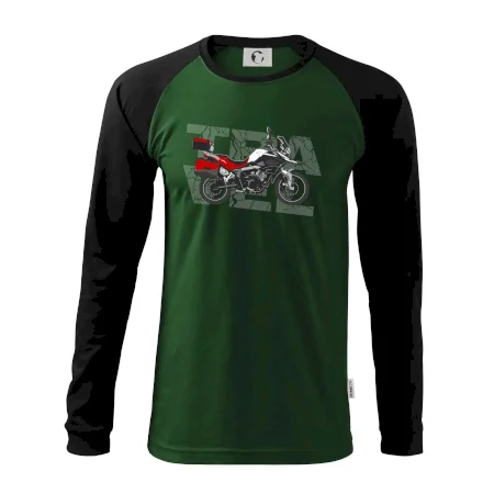 Tričko pre motorkára, na ktorom je červená cestovná enduro motorka. Motorkárske tričko, kde je cestovná motorka, musí mať doma každý vášnivý motorkár. Tričko s motorkou je vhodný darček pre motorkára.