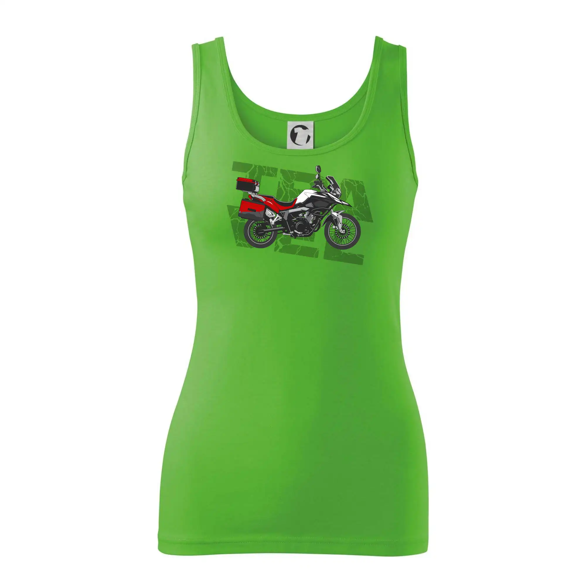 Tričko pre motorkára, na ktorom je červená cestovná enduro motorka. Motorkárske tričko, kde je cestovná motorka, musí mať doma každý vášnivý motorkár. Tričko s motorkou je vhodný darček pre motorkára.