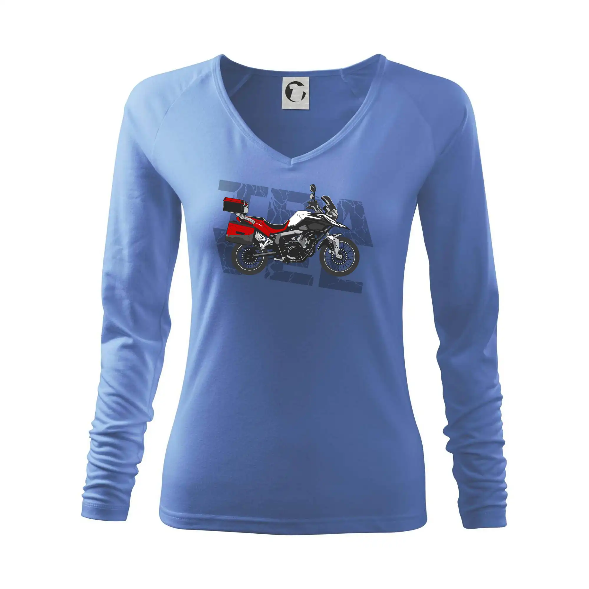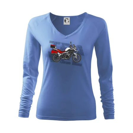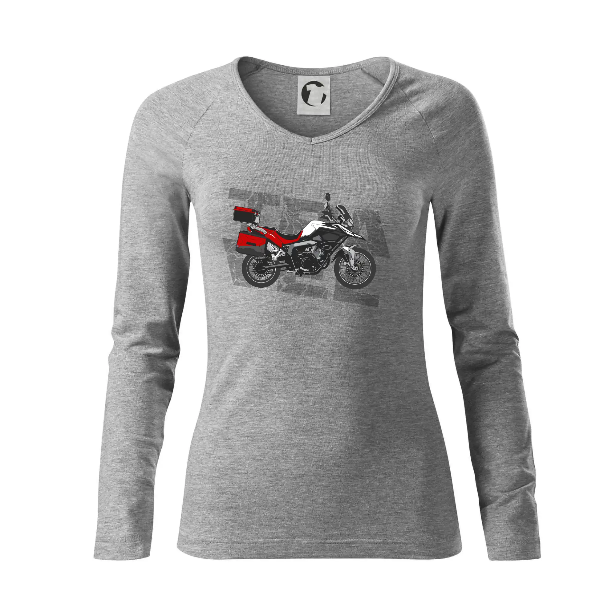 Tričko pre motorkára, na ktorom je červená cestovná enduro motorka. Motorkárske tričko, kde je cestovná motorka, musí mať doma každý vášnivý motorkár. Tričko s motorkou je vhodný darček pre motorkára.