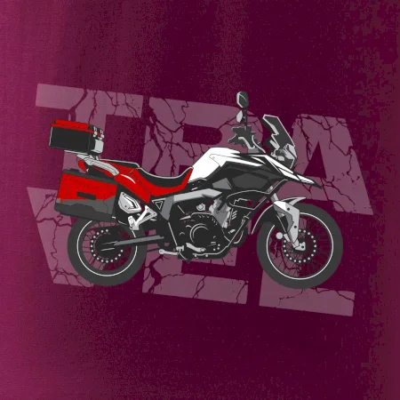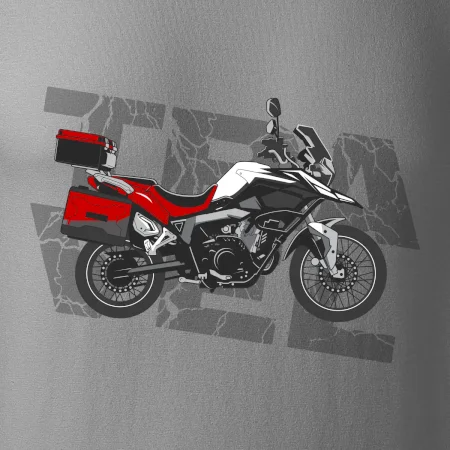 Tričko pre motorkára, na ktorom je červená cestovná enduro motorka. Motorkárske tričko, kde je cestovná motorka, musí mať doma každý vášnivý motorkár. Tričko s motorkou je vhodný darček pre motorkára.