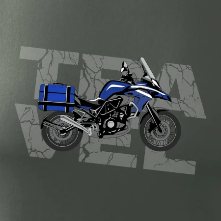 Tričko pre motorkára, na ktorom je modrá cestovná enduro motorka. Motorkárske tričko, kde je cestovná motorka, musí mať doma každý vášnivý motorkár. Tričko s motorkou je vhodný darček pre motorkára.