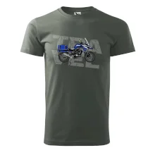 Tričko pre motorkára, na ktorom je modrá cestovná enduro motorka. Motorkárske tričko, kde je cestovná motorka, musí mať doma každý vášnivý motorkár. Tričko s motorkou je vhodný darček pre motorkára.