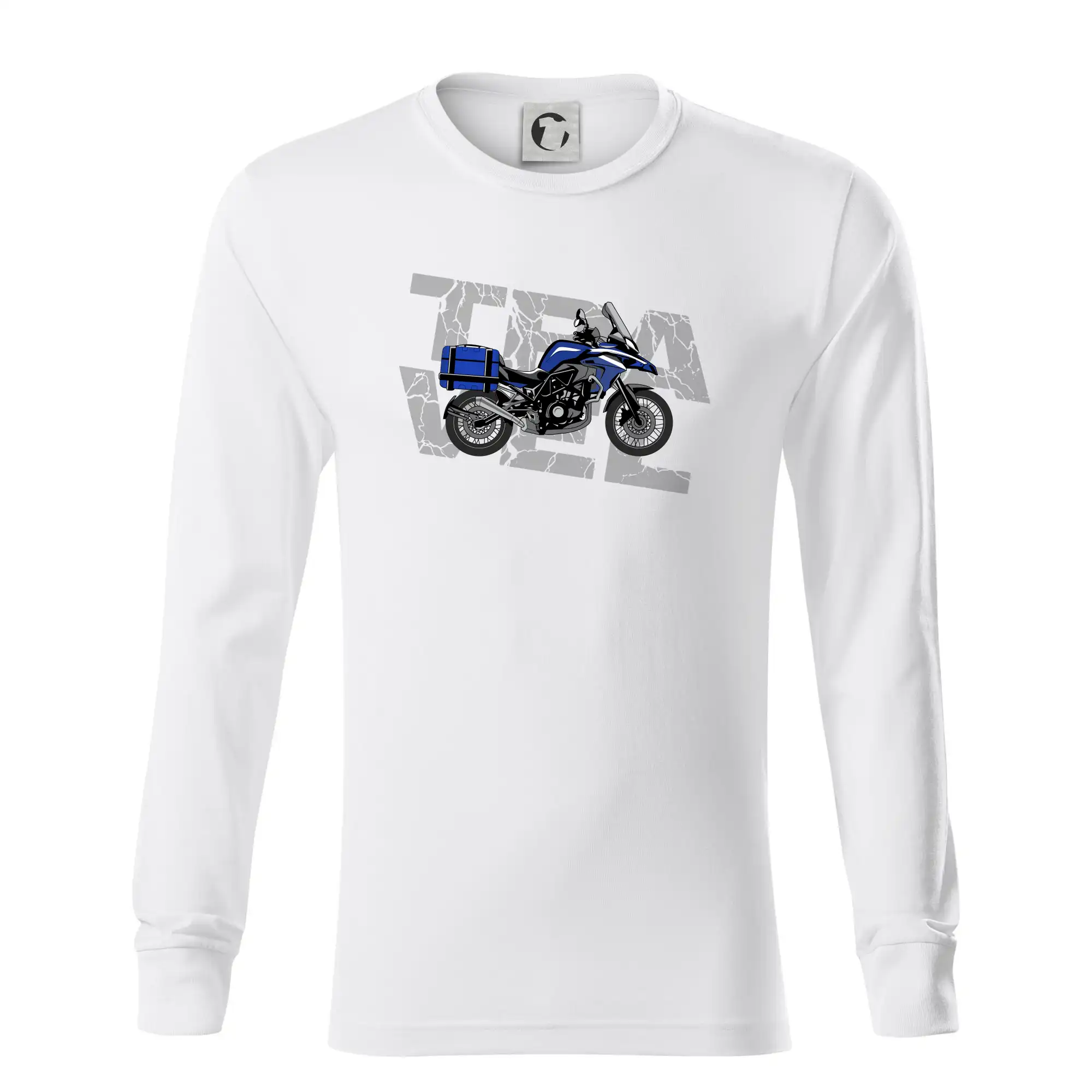 Tričko pre motorkára, na ktorom je modrá cestovná enduro motorka. Motorkárske tričko, kde je cestovná motorka, musí mať doma každý vášnivý motorkár. Tričko s motorkou je vhodný darček pre motorkára.