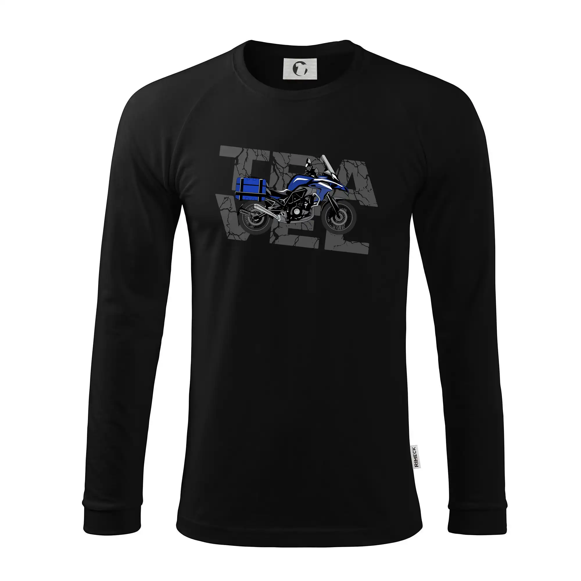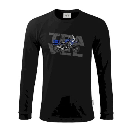 Tričko pre motorkára, na ktorom je modrá cestovná enduro motorka. Motorkárske tričko, kde je cestovná motorka, musí mať doma každý vášnivý motorkár. Tričko s motorkou je vhodný darček pre motorkára.