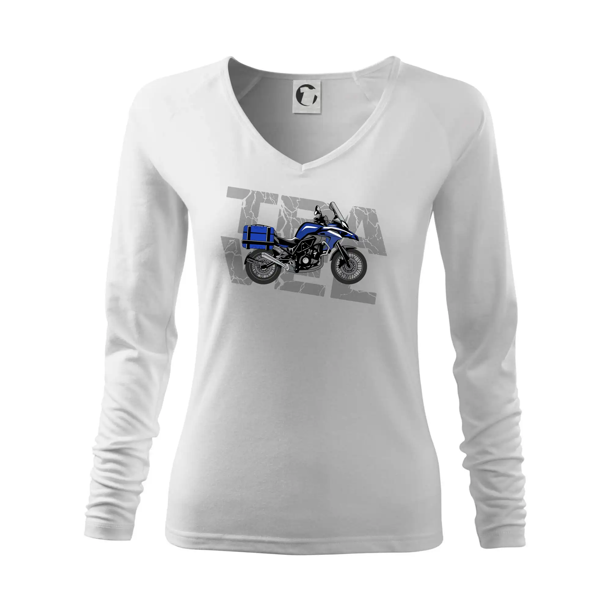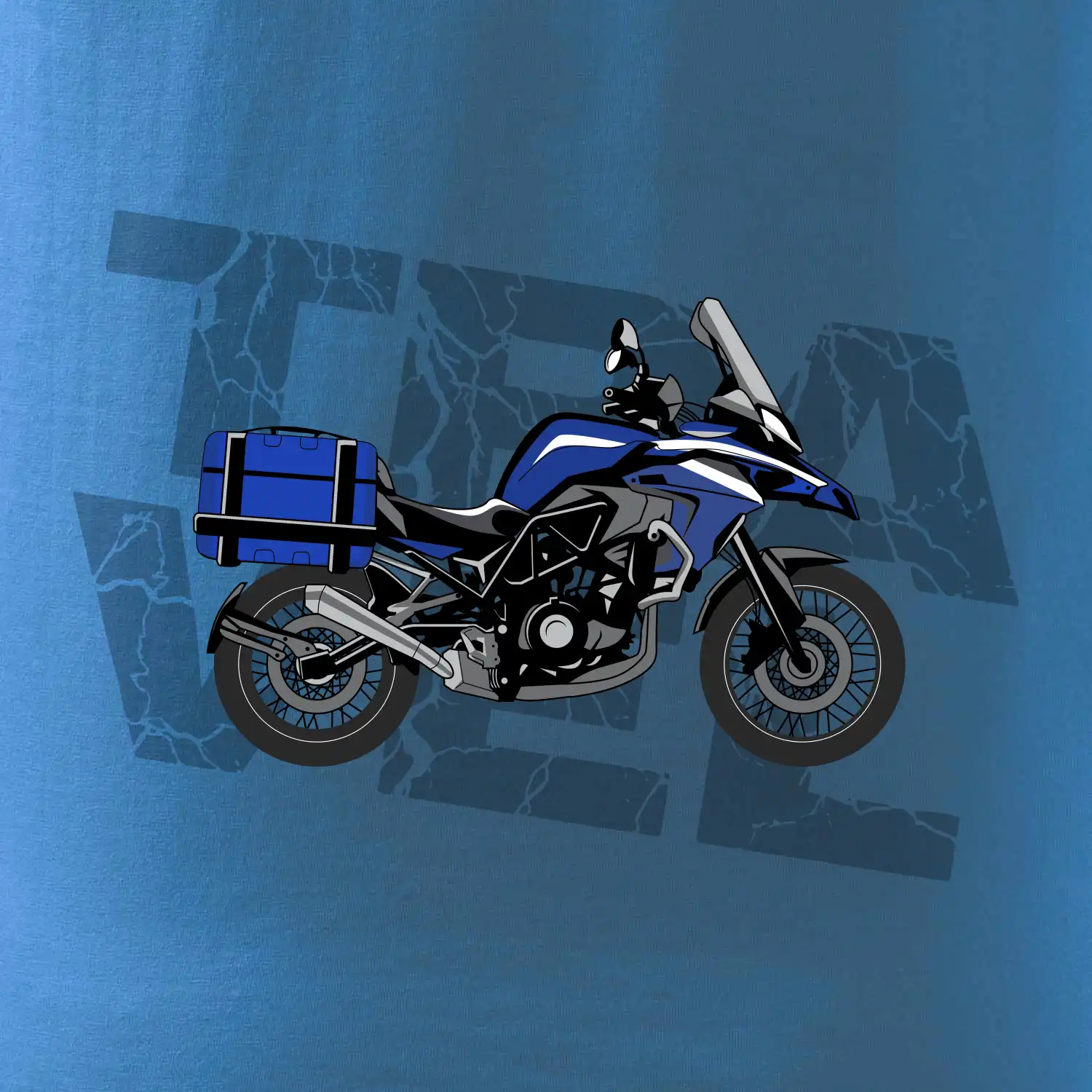 Tričko pre motorkára, na ktorom je modrá cestovná enduro motorka. Motorkárske tričko, kde je cestovná motorka, musí mať doma každý vášnivý motorkár. Tričko s motorkou je vhodný darček pre motorkára.