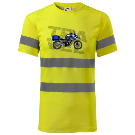 Tričko pre motorkára, na ktorom je modrá cestovná enduro motorka. Motorkárske tričko, kde je cestovná motorka, musí mať doma každý vášnivý motorkár. Tričko s motorkou je vhodný darček pre motorkára.