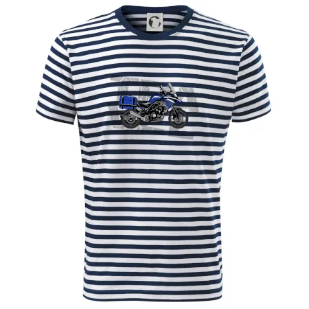 Tričko pre motorkára, na ktorom je modrá cestovná enduro motorka. Motorkárske tričko, kde je cestovná motorka, musí mať doma každý vášnivý motorkár. Tričko s motorkou je vhodný darček pre motorkára.