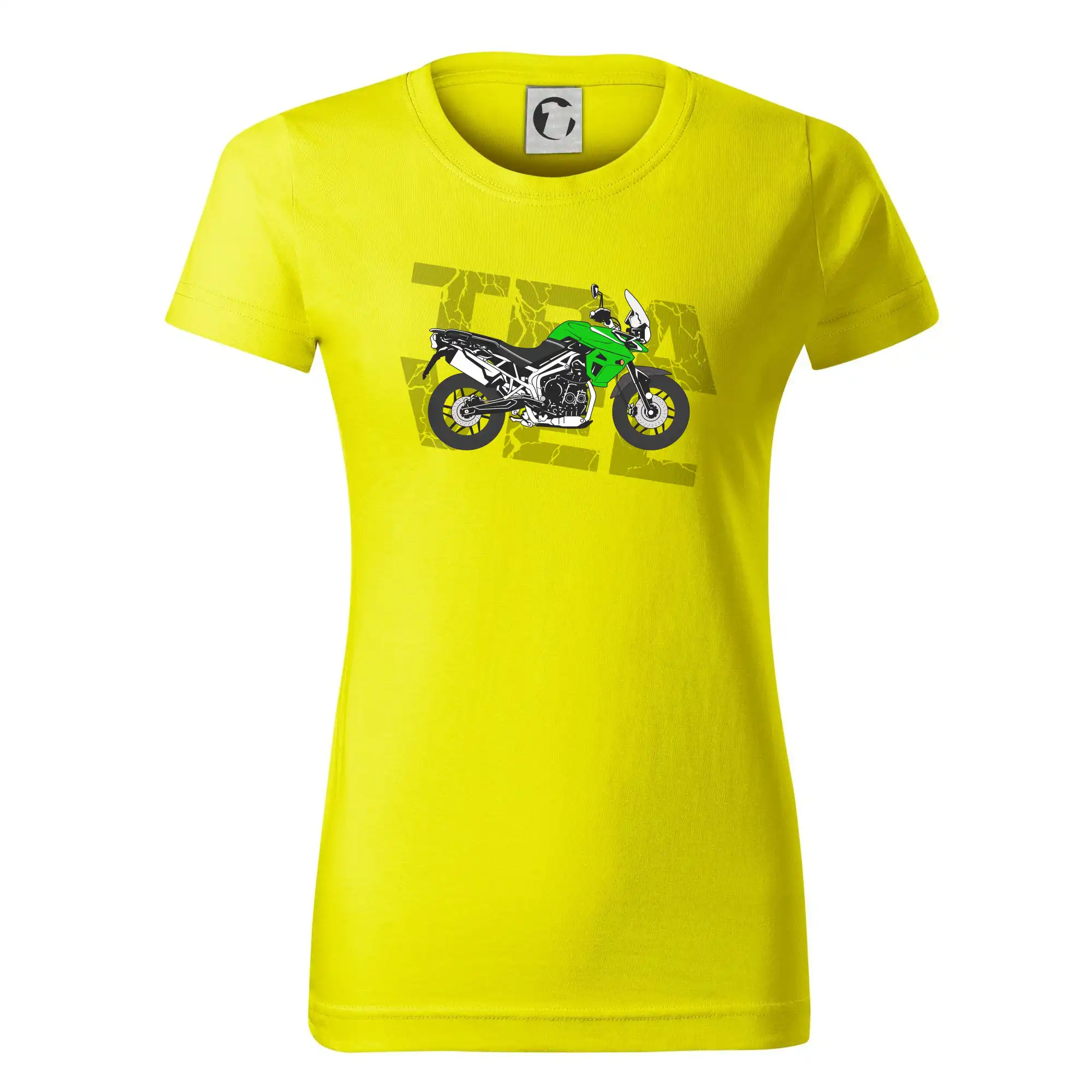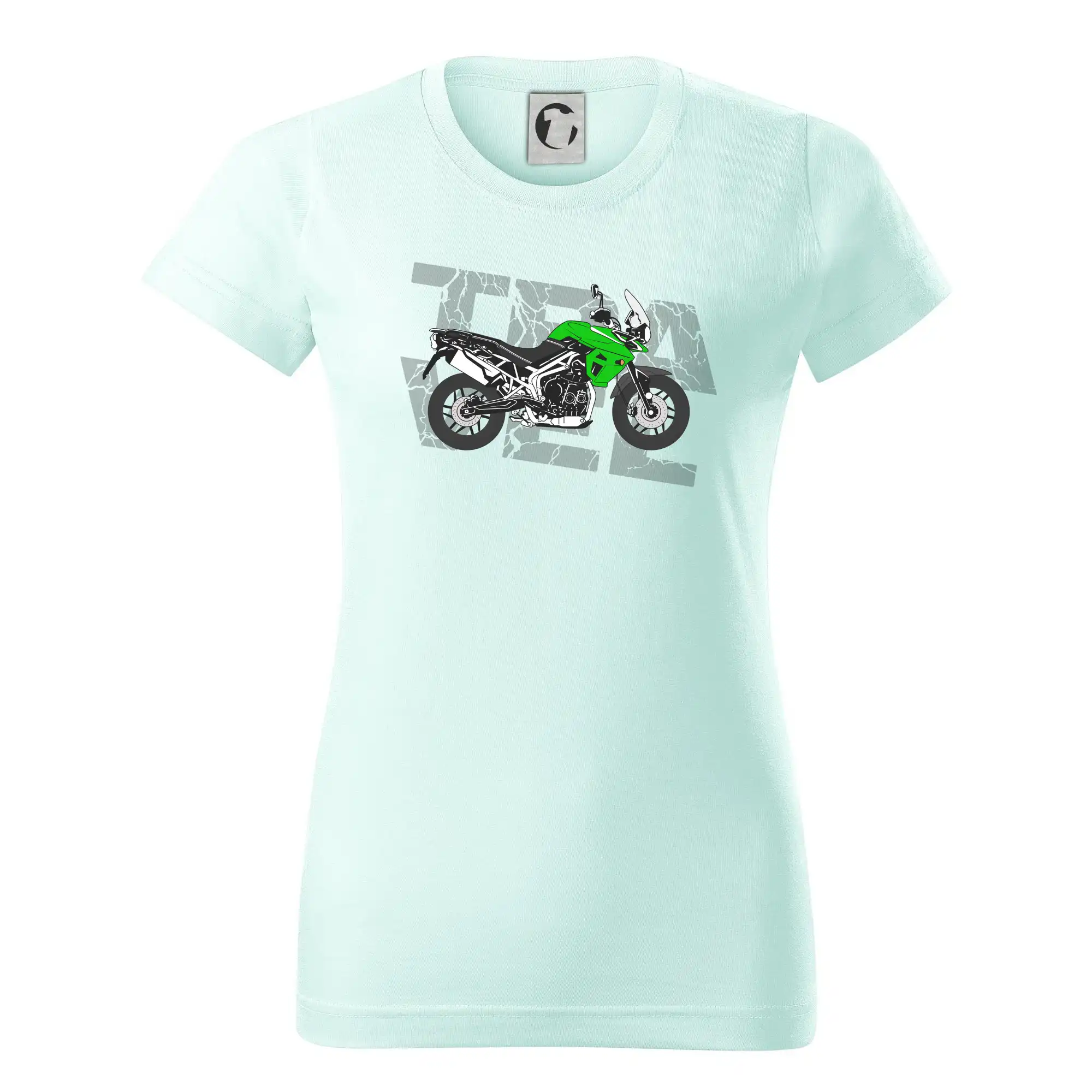 Tričko pre motorkára, na ktorom je zelená cestovná enduro motorka. Motorkárske tričko, kde je cestovná motorka, musí mať doma každý vášnivý motorkár. Tričko s motorkou je vhodný darček pre motorkára.
