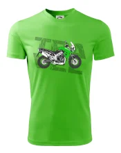 Tričko pre motorkára, na ktorom je zelená cestovná enduro motorka. Motorkárske tričko, kde je cestovná motorka, musí mať doma každý vášnivý motorkár. Tričko s motorkou je vhodný darček pre motorkára.