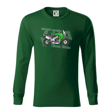 Tričko pre motorkára, na ktorom je zelená cestovná enduro motorka. Motorkárske tričko, kde je cestovná motorka, musí mať doma každý vášnivý motorkár. Tričko s motorkou je vhodný darček pre motorkára.