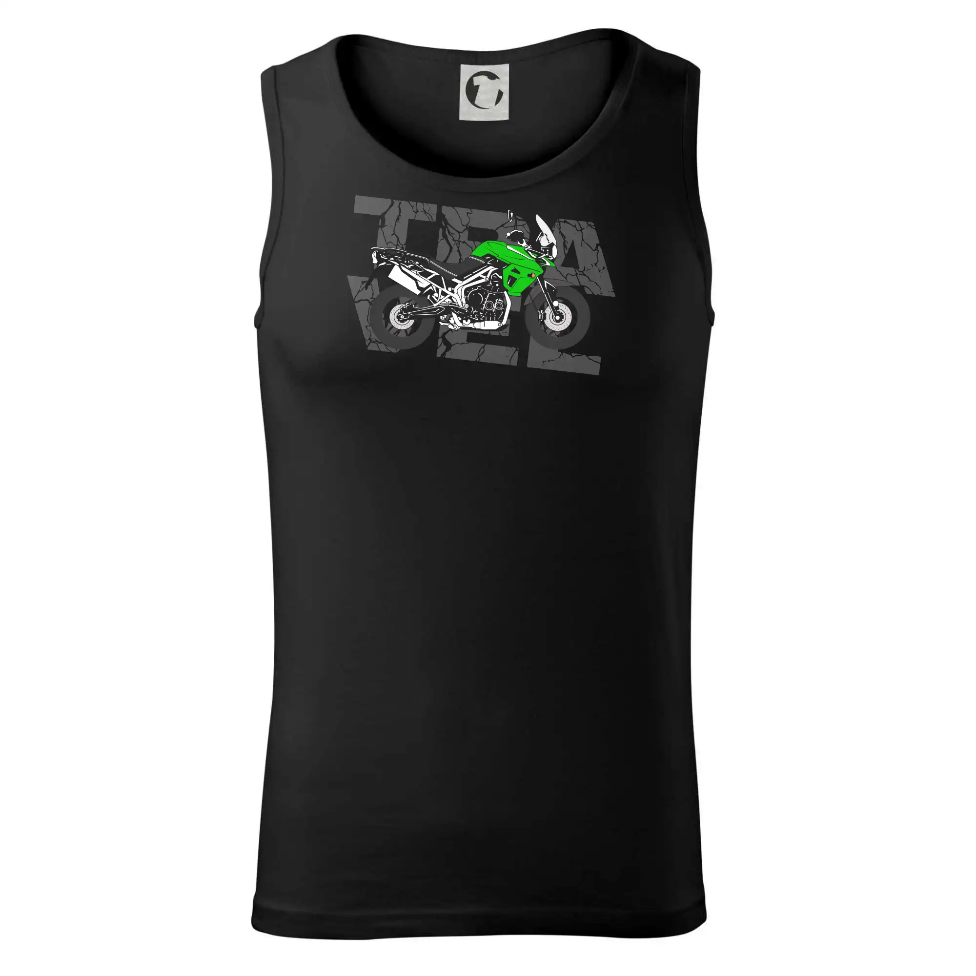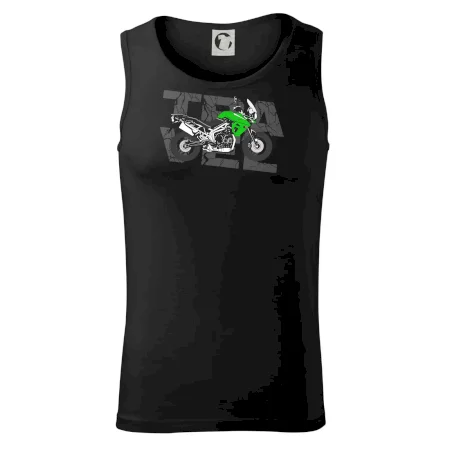 Tričko pre motorkára, na ktorom je zelená cestovná enduro motorka. Motorkárske tričko, kde je cestovná motorka, musí mať doma každý vášnivý motorkár. Tričko s motorkou je vhodný darček pre motorkára.