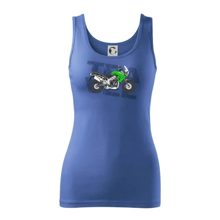 Tričko pre motorkára, na ktorom je zelená cestovná enduro motorka. Motorkárske tričko, kde je cestovná motorka, musí mať doma každý vášnivý motorkár. Tričko s motorkou je vhodný darček pre motorkára.