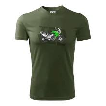Tričko pre motorkára, na ktorom je zelená cestovná enduro motorka. Motorkárske tričko, kde je cestovná motorka, musí mať doma každý vášnivý motorkár. Tričko s motorkou je vhodný darček pre motorkára.