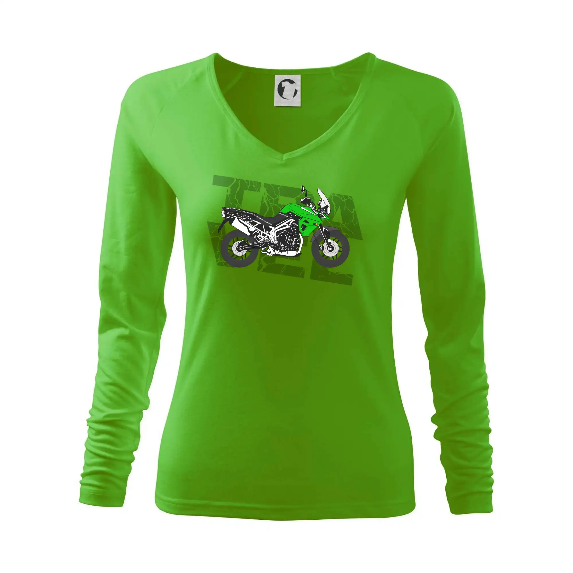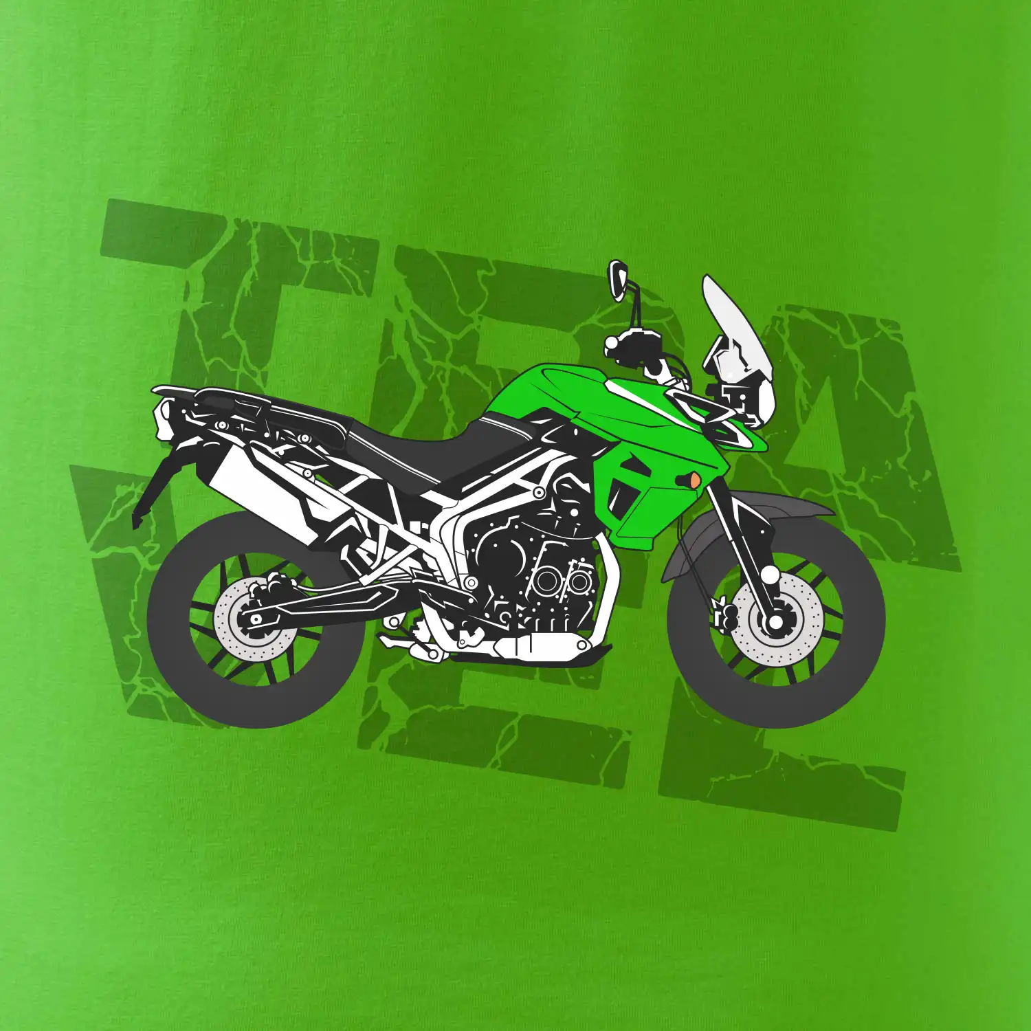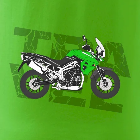 Tričko pre motorkára, na ktorom je zelená cestovná enduro motorka. Motorkárske tričko, kde je cestovná motorka, musí mať doma každý vášnivý motorkár. Tričko s motorkou je vhodný darček pre motorkára.