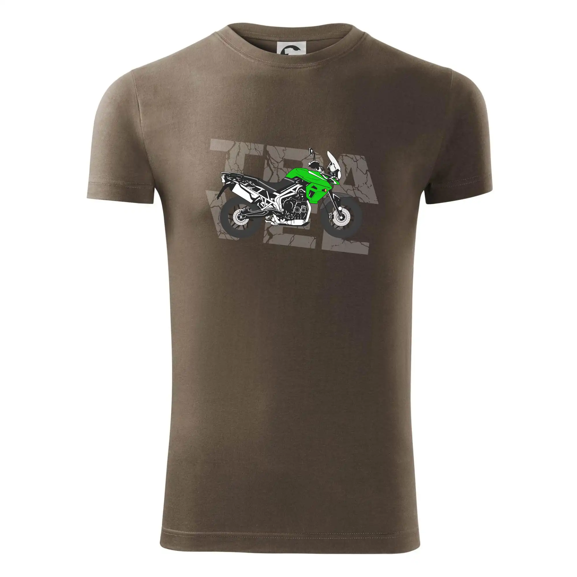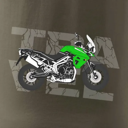 Tričko pre motorkára, na ktorom je zelená cestovná enduro motorka. Motorkárske tričko, kde je cestovná motorka, musí mať doma každý vášnivý motorkár. Tričko s motorkou je vhodný darček pre motorkára.