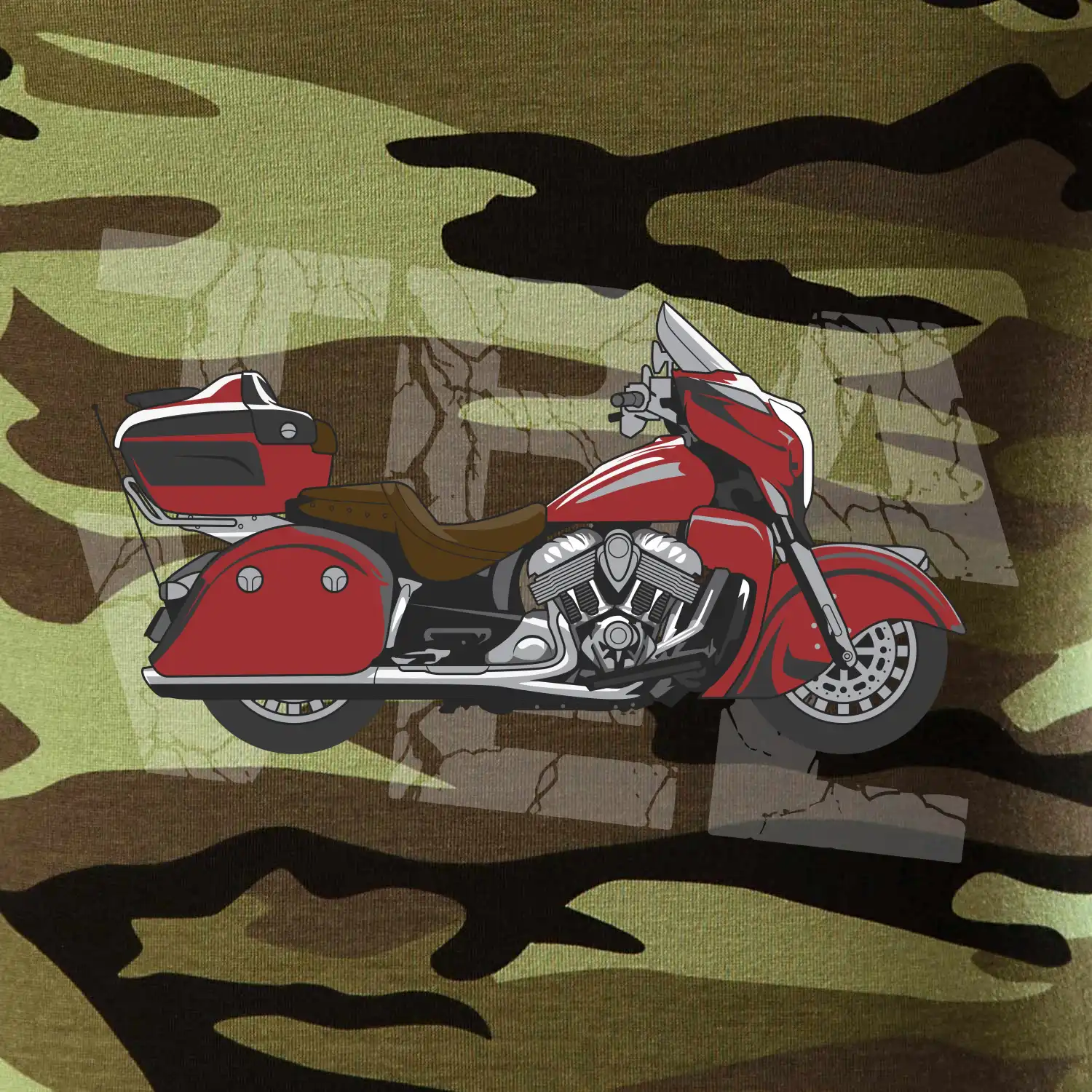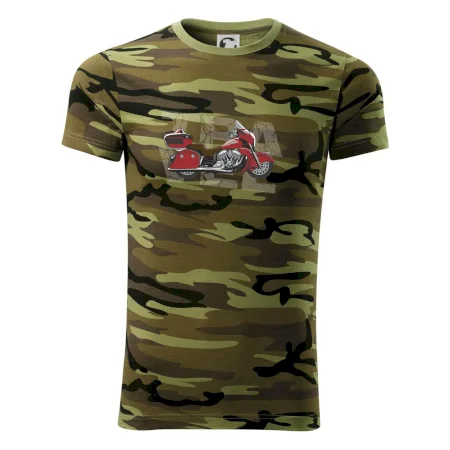 Tričko pre motorkára, na ktorom je červená cestovná motorka Amerika. Motorkárske tričko, kde je cestovná motorka, musí mať doma každý vášnivý motorkár. Tričko s motorkou je vhodný darček pre motorkára.