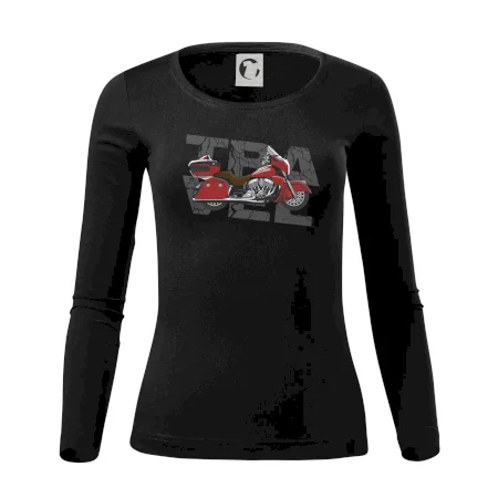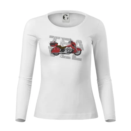 Tričko pre motorkára, na ktorom je červená cestovná motorka Amerika. Motorkárske tričko, kde je cestovná motorka, musí mať doma každý vášnivý motorkár. Tričko s motorkou je vhodný darček pre motorkára.