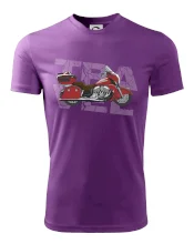 Tričko pre motorkára, na ktorom je červená cestovná motorka Amerika. Motorkárske tričko, kde je cestovná motorka, musí mať doma každý vášnivý motorkár. Tričko s motorkou je vhodný darček pre motorkára.