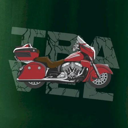 Tričko pre motorkára, na ktorom je červená cestovná motorka Amerika. Motorkárske tričko, kde je cestovná motorka, musí mať doma každý vášnivý motorkár. Tričko s motorkou je vhodný darček pre motorkára.
