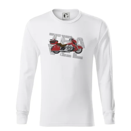 Tričko pre motorkára, na ktorom je červená cestovná motorka Amerika. Motorkárske tričko, kde je cestovná motorka, musí mať doma každý vášnivý motorkár. Tričko s motorkou je vhodný darček pre motorkára.