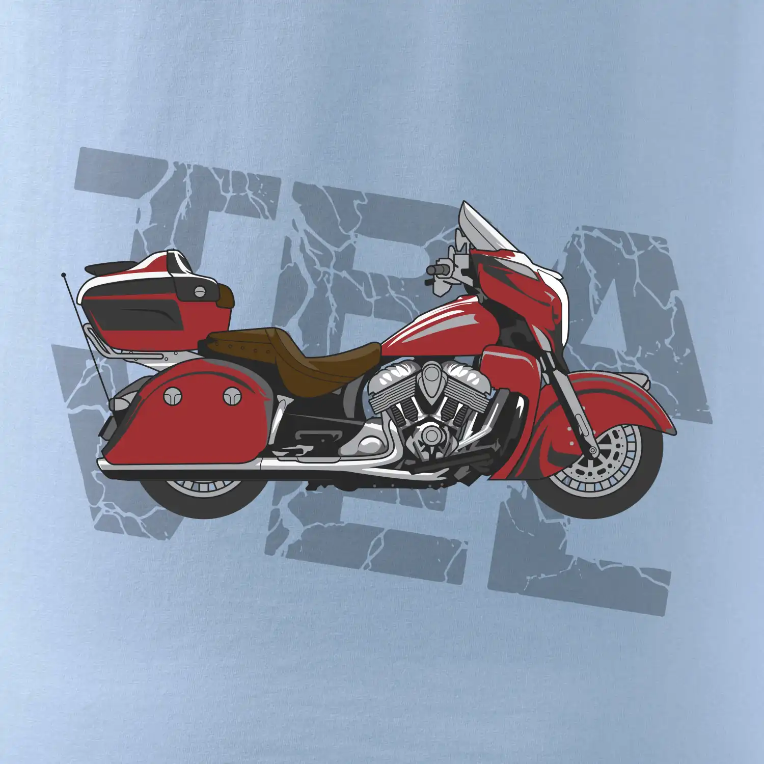 Tričko pre motorkára, na ktorom je červená cestovná motorka Amerika. Motorkárske tričko, kde je cestovná motorka, musí mať doma každý vášnivý motorkár. Tričko s motorkou je vhodný darček pre motorkára.