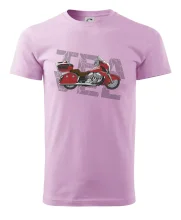 Tričko pre motorkára, na ktorom je červená cestovná motorka Amerika. Motorkárske tričko, kde je cestovná motorka, musí mať doma každý vášnivý motorkár. Tričko s motorkou je vhodný darček pre motorkára.