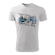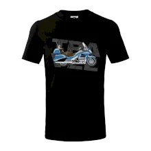 Tričko pre motorkára, na ktorom je modrá cestovná motorka Amerika. Motorkárske tričko, kde je cestovná motorka, musí mať doma každý vášnivý motorkár. Tričko s motorkou je vhodný darček pre motorkára.