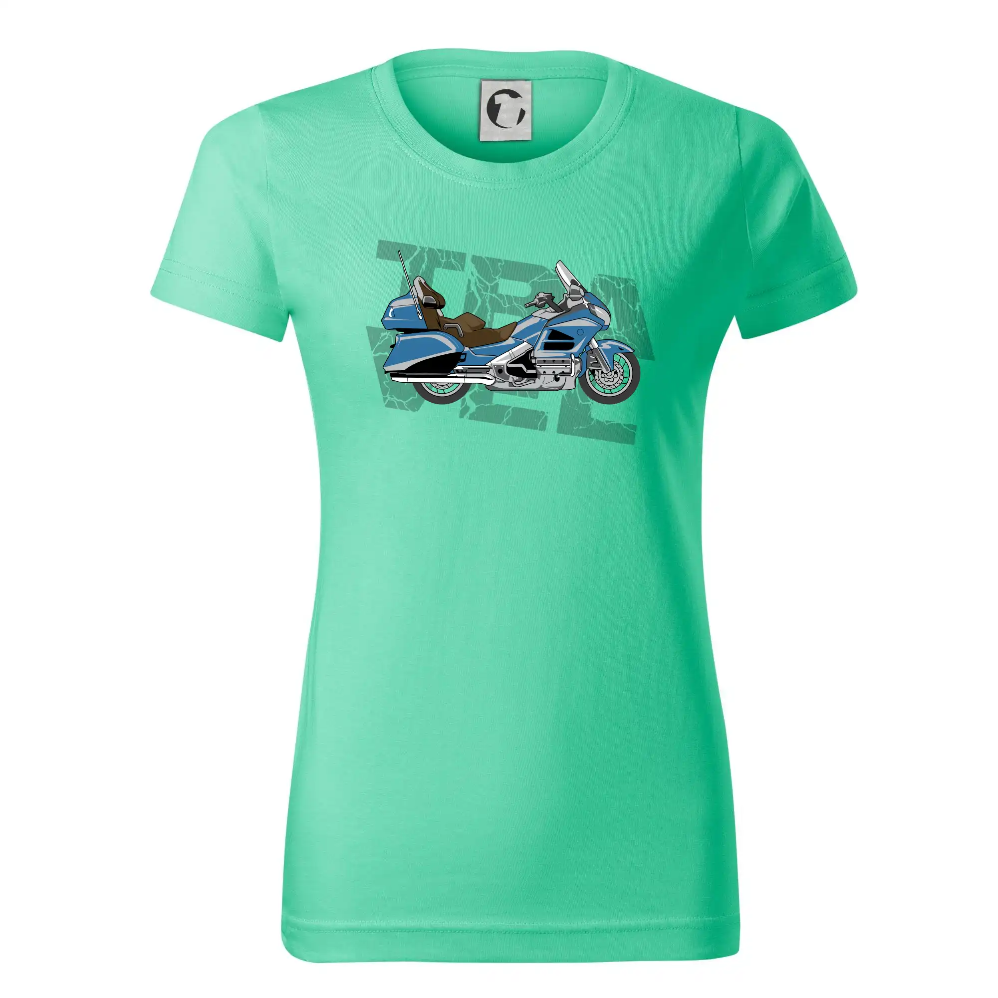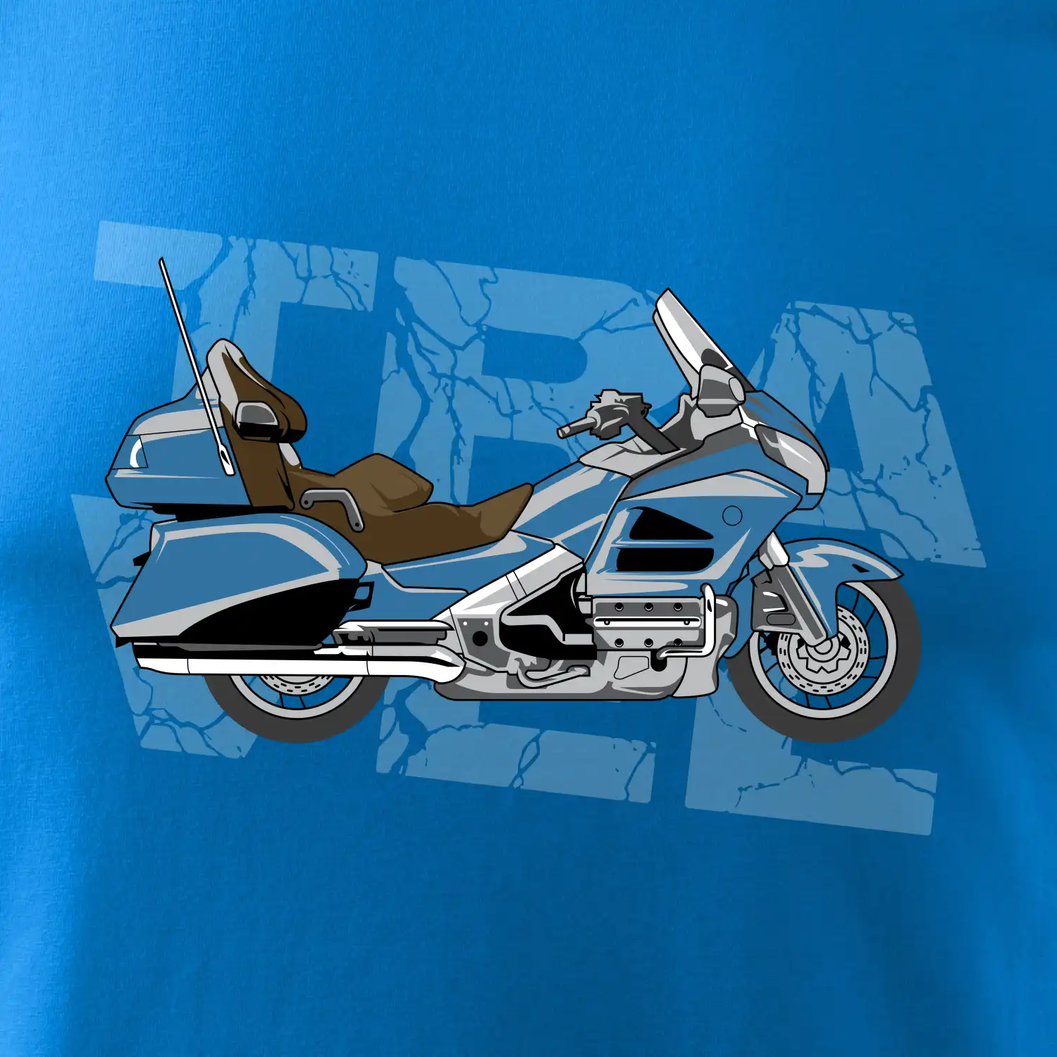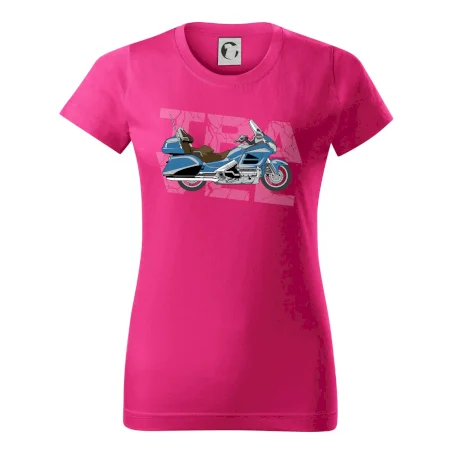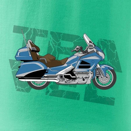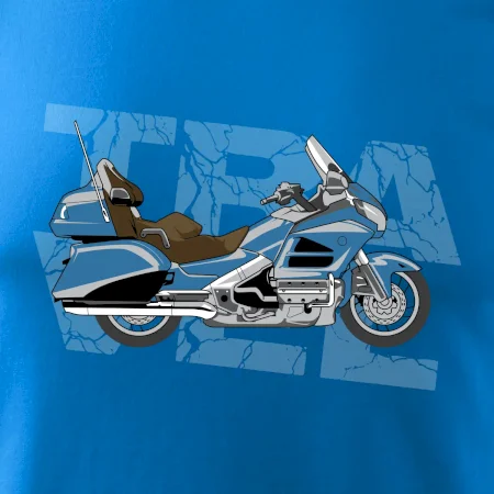 Tričko pre motorkára, na ktorom je modrá cestovná motorka Amerika. Motorkárske tričko, kde je cestovná motorka, musí mať doma každý vášnivý motorkár. Tričko s motorkou je vhodný darček pre motorkára.