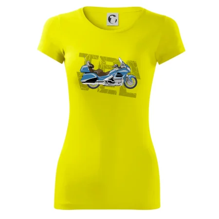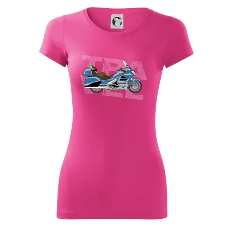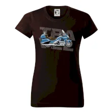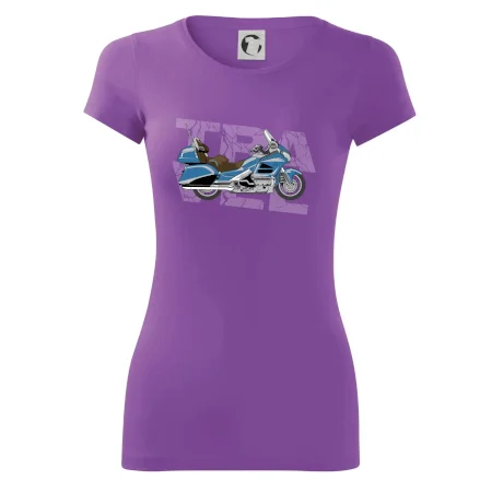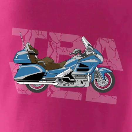 Tričko pre motorkára, na ktorom je modrá cestovná motorka Amerika. Motorkárske tričko, kde je cestovná motorka, musí mať doma každý vášnivý motorkár. Tričko s motorkou je vhodný darček pre motorkára.