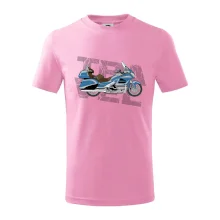 Tričko pre motorkára, na ktorom je modrá cestovná motorka Amerika. Motorkárske tričko, kde je cestovná motorka, musí mať doma každý vášnivý motorkár. Tričko s motorkou je vhodný darček pre motorkára.