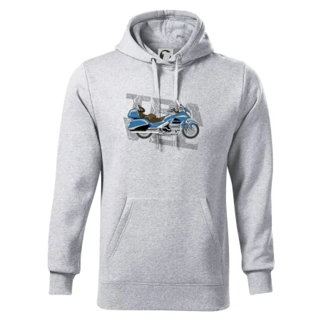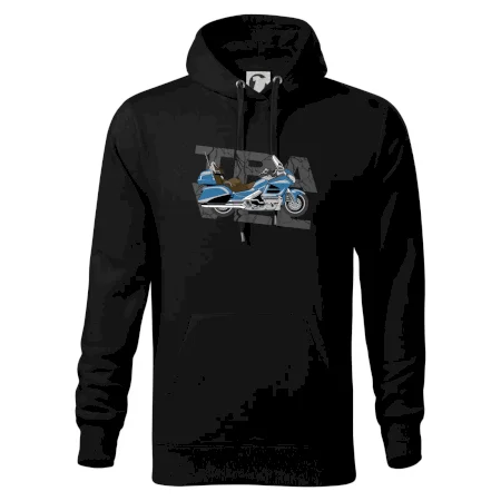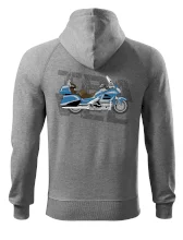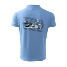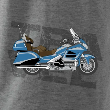 Tričko pre motorkára, na ktorom je modrá cestovná motorka Amerika. Motorkárske tričko, kde je cestovná motorka, musí mať doma každý vášnivý motorkár. Tričko s motorkou je vhodný darček pre motorkára.