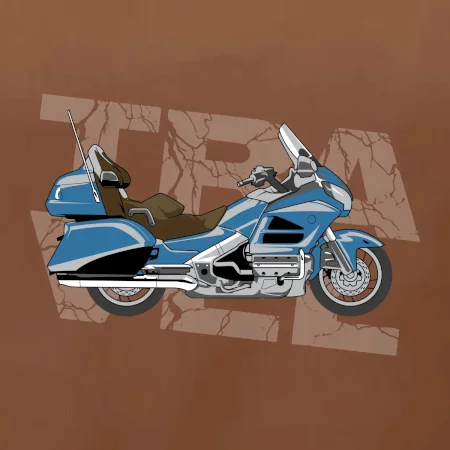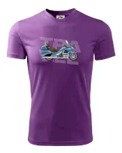 Tričko pre motorkára, na ktorom je modrá cestovná motorka Amerika. Motorkárske tričko, kde je cestovná motorka, musí mať doma každý vášnivý motorkár. Tričko s motorkou je vhodný darček pre motorkára.