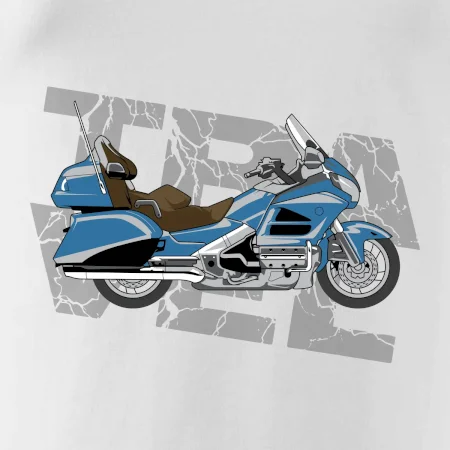 Tričko pre motorkára, na ktorom je modrá cestovná motorka Amerika. Motorkárske tričko, kde je cestovná motorka, musí mať doma každý vášnivý motorkár. Tričko s motorkou je vhodný darček pre motorkára.