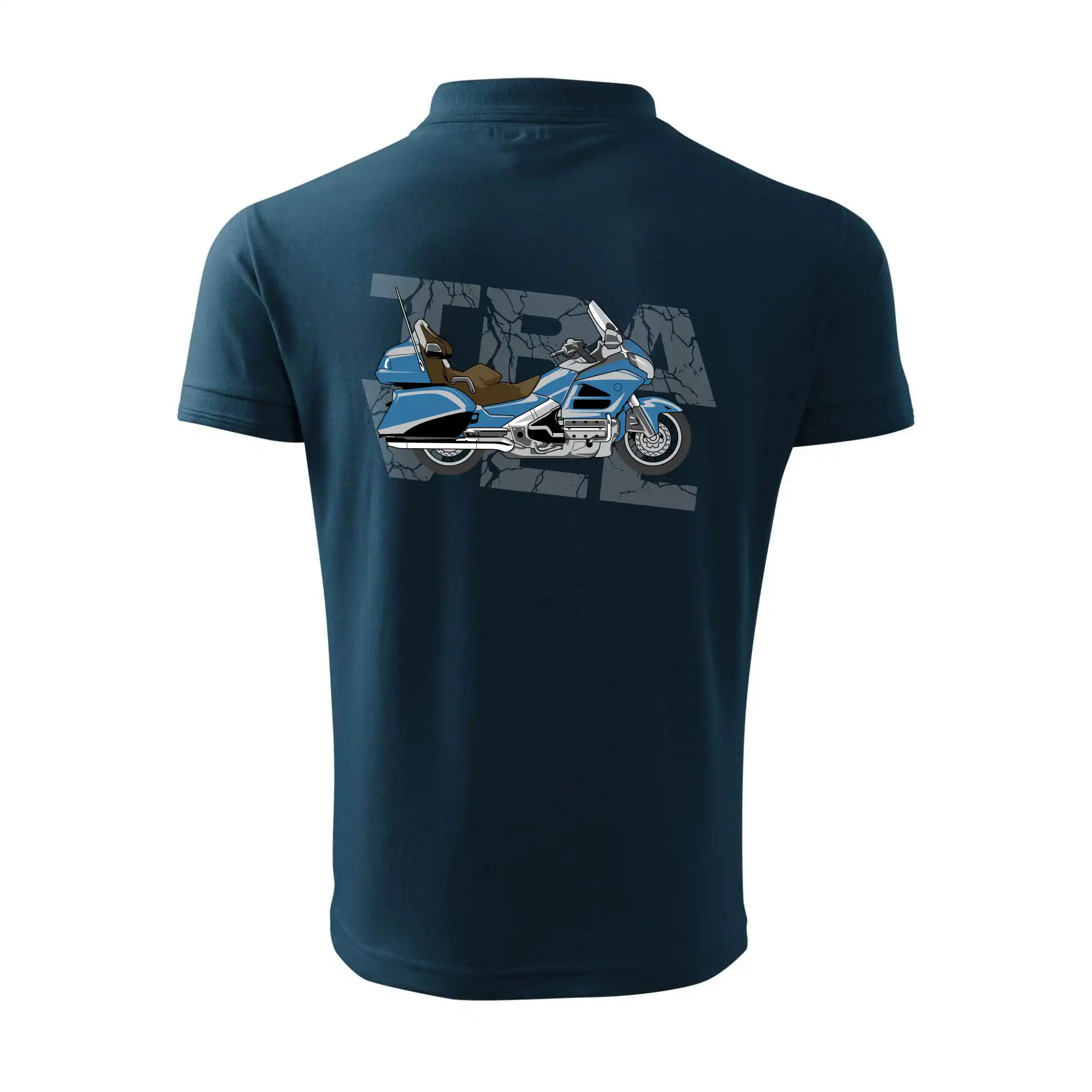 Tričko pre motorkára, na ktorom je modrá cestovná motorka Amerika. Motorkárske tričko, kde je cestovná motorka, musí mať doma každý vášnivý motorkár. Tričko s motorkou je vhodný darček pre motorkára.