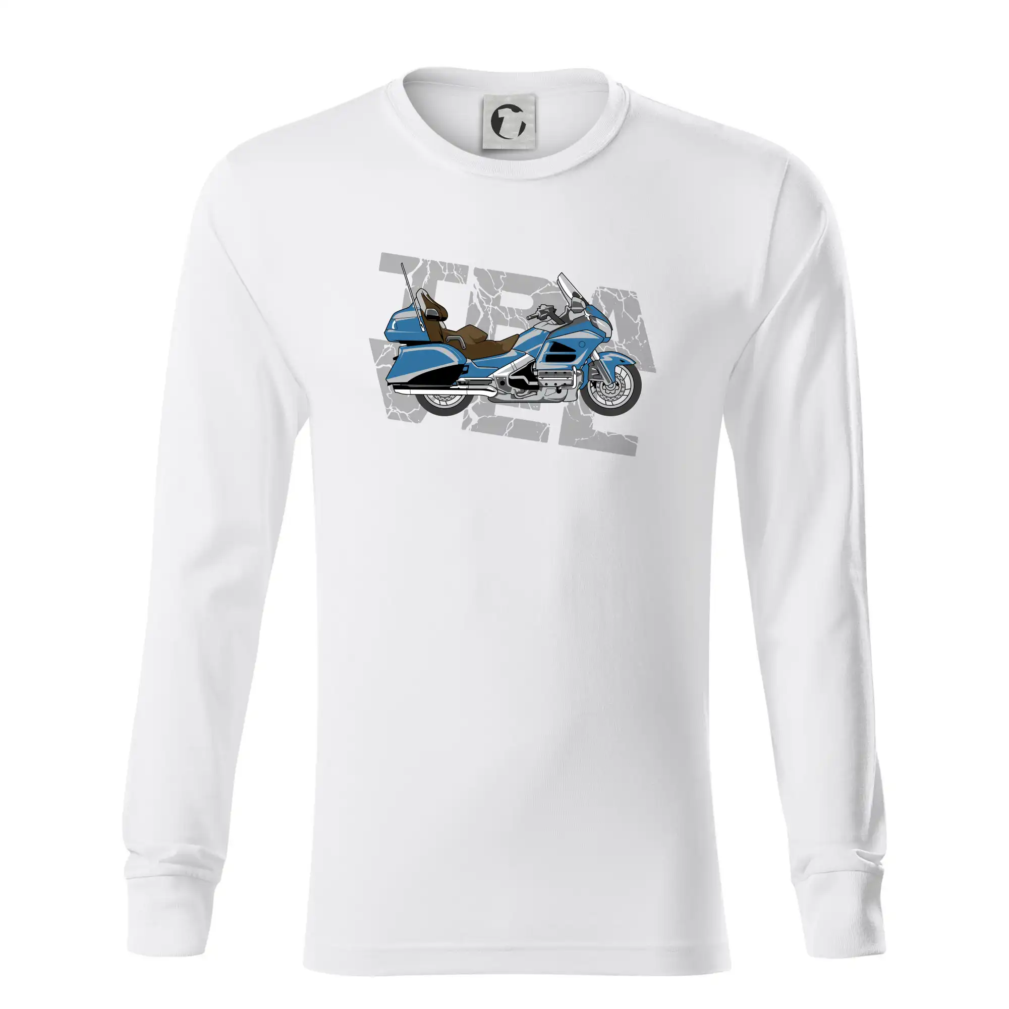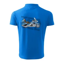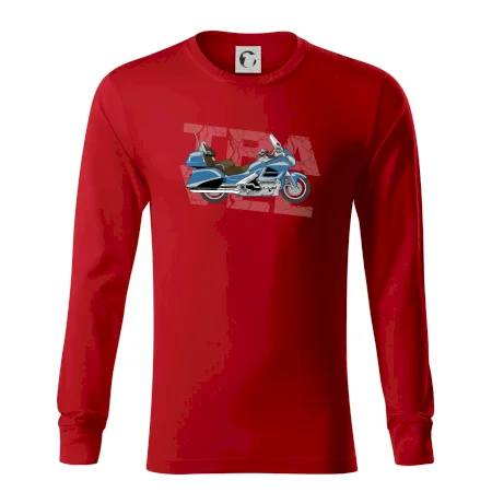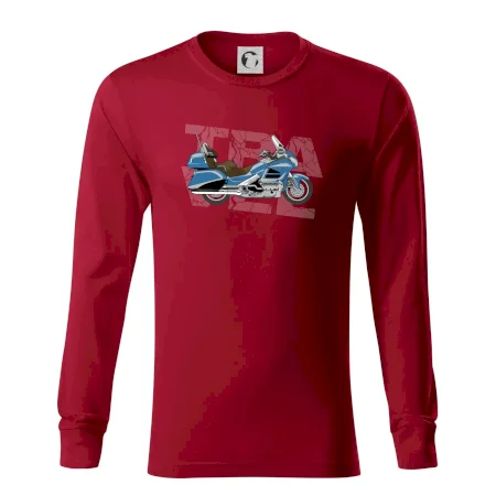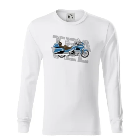 Tričko pre motorkára, na ktorom je modrá cestovná motorka Amerika. Motorkárske tričko, kde je cestovná motorka, musí mať doma každý vášnivý motorkár. Tričko s motorkou je vhodný darček pre motorkára.